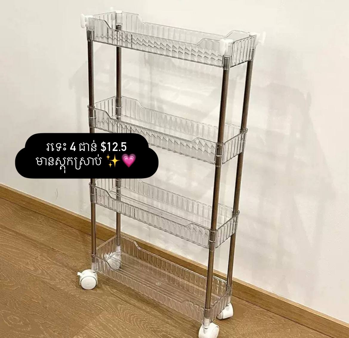4 tier clear trolley