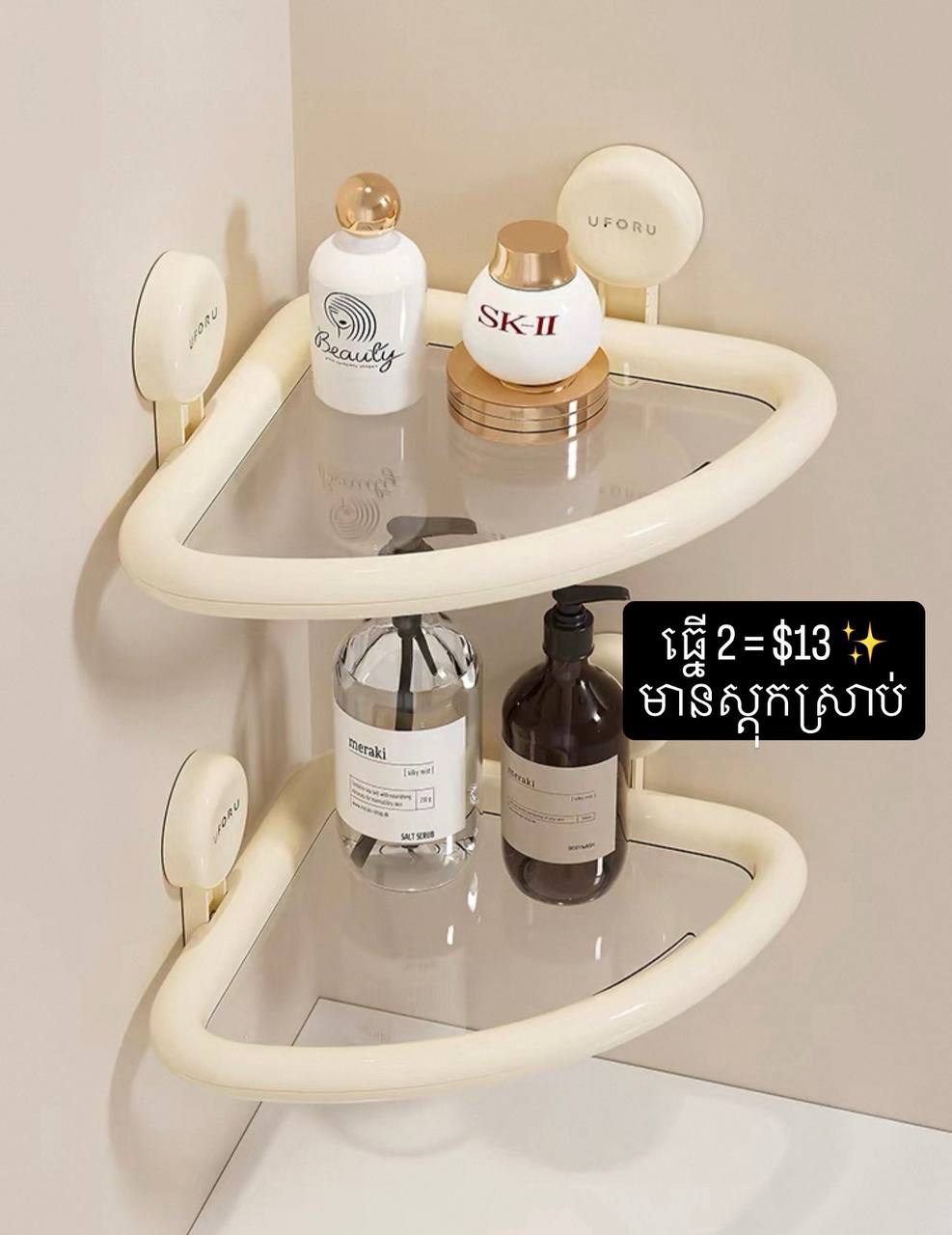 / Cream suction corner shelf