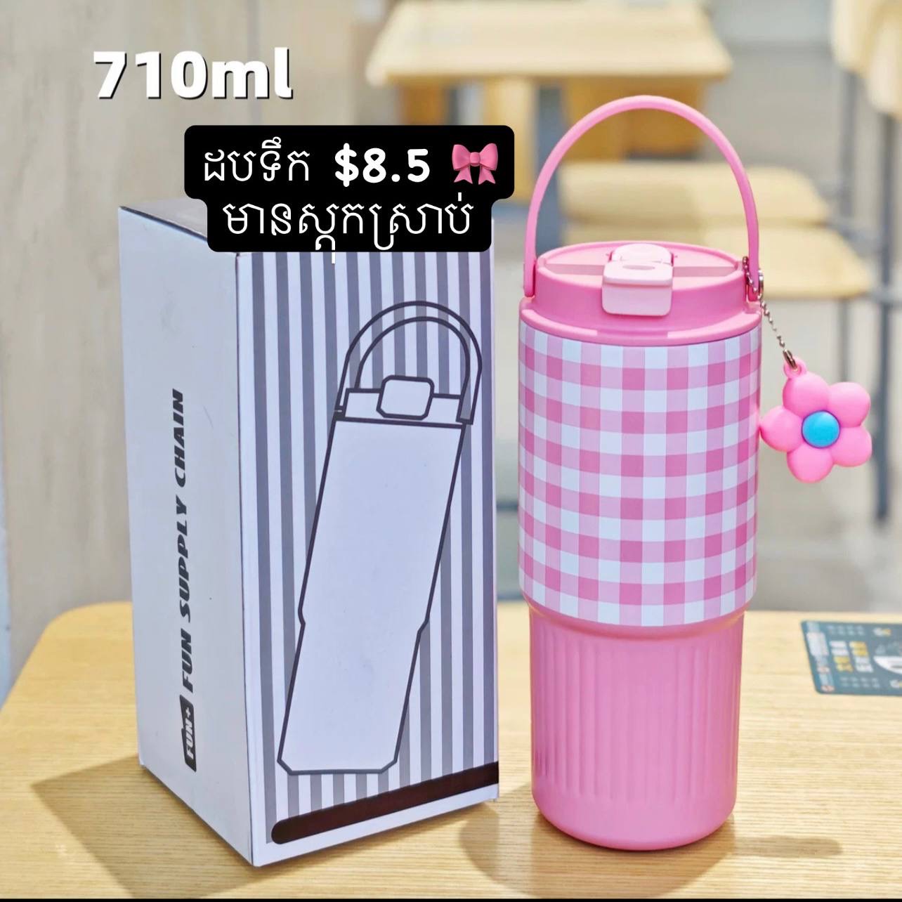 Gingham Pink Tumblr with Handle quantity