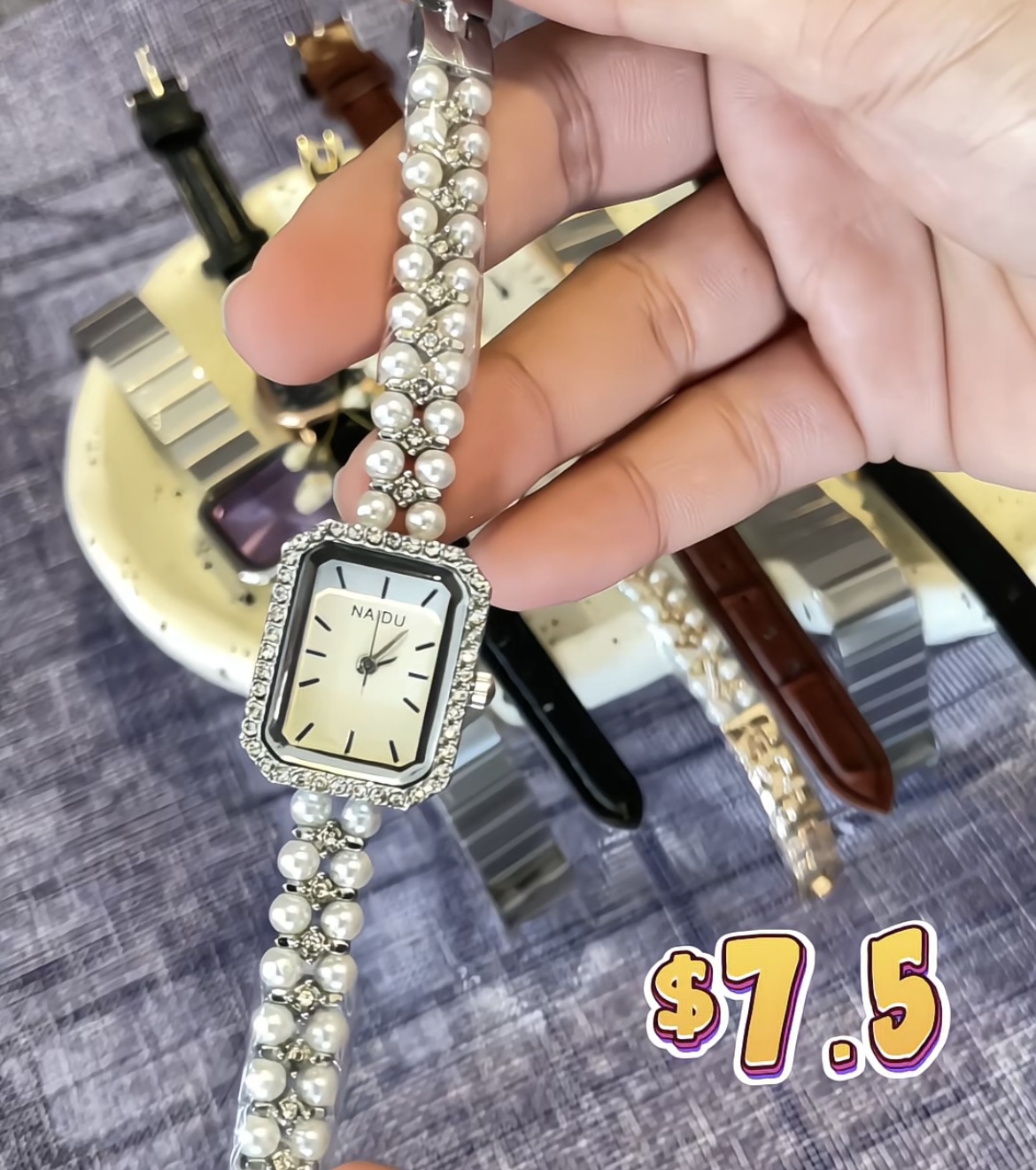 Pearl strap watch-silver quantity