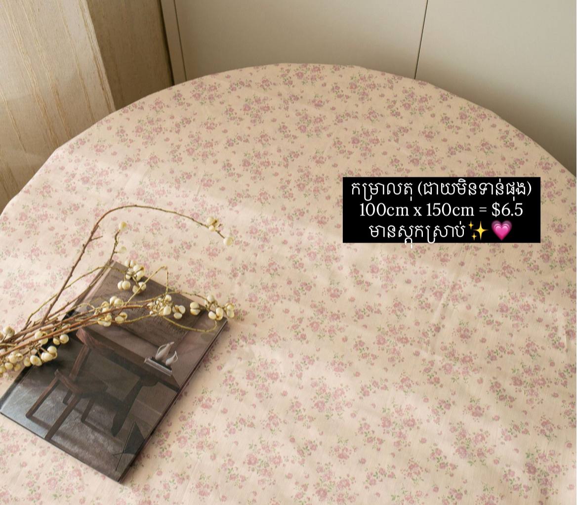 / Pink floral table cloth 100cm x 150cm